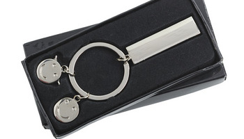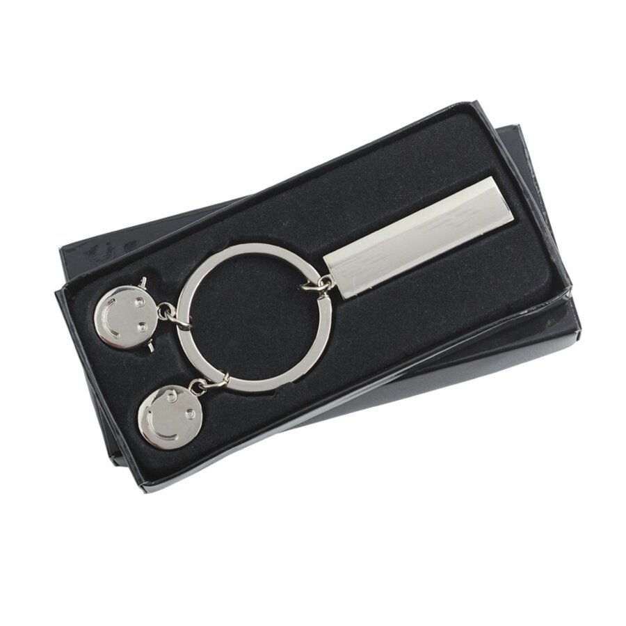 Brelok metalowy Flat Błyszczący brelok metalowy z dużym miejscem na prezentacje logo. Pakowany w czarne opakowanie upominkowe. Dodaj do zapytania
