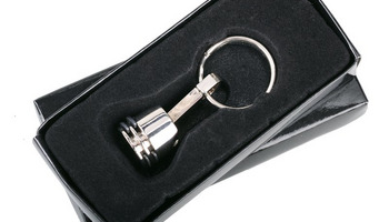 Brelok metalowy Piston Metalowy brelok w kształcie tłoka samochodowego. Pakowany w czarne opakowanie upominkowe. Dodaj do zapytania
