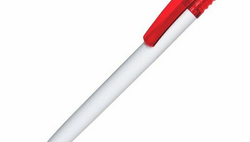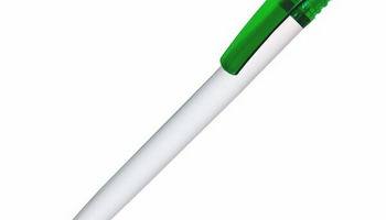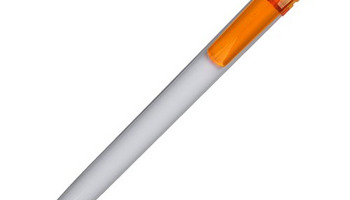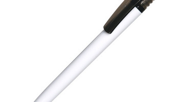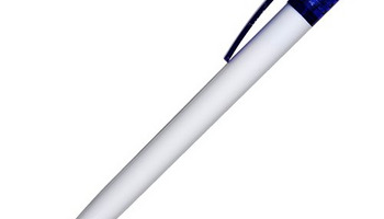 Plastikowy długopis promocyjny. Wyposażony w niebieski wkład.