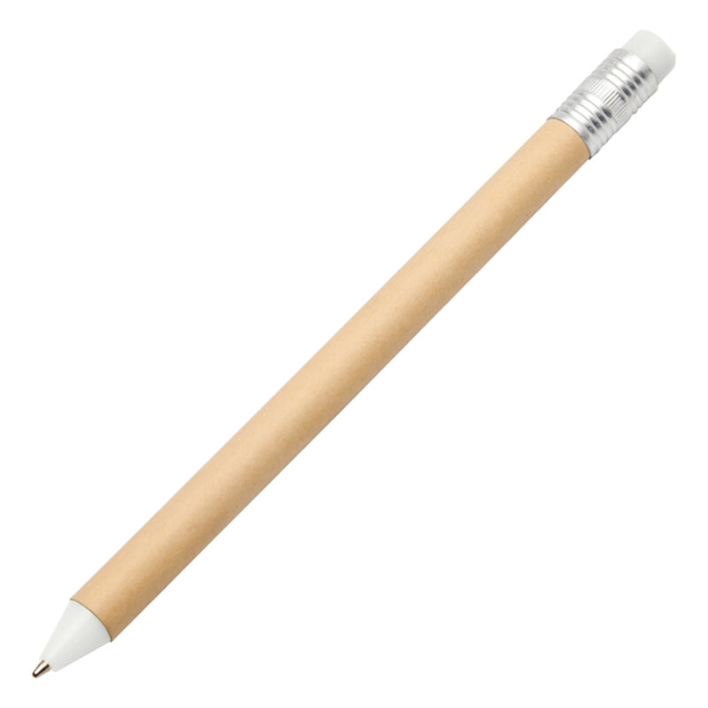 Długopis w kształcie ołówka wykonany z kartonu z recyklingu i plastiku nadającego się do powtórnego przetworzenia. Wkład w kolorze niebieskim.