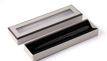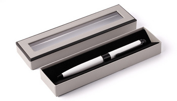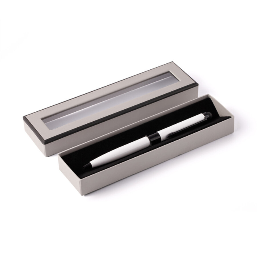 Metalowy długopis z końcówką przystosowaną do ekranów dotykowych. w upominkowym pudełku. Wkład w kolorze niebieskim.