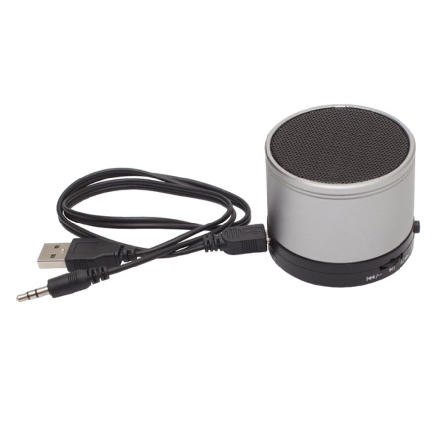 Głośnik 3W Bluetooth 2.1 z funkcją przyspieszającą szybkość transmisji EDR. Wyposażony w port na kartę micro SD, kabel do ładowania, radio FM i funkcję odbierania połączeń z telefonu (zasięg 10 m). Wbudowany akumulator o pojemności 300 mAh. Czas odtwarzania 4-5 godzin, czas ładowania: około 2 godziny. Czułość SPL: >95 dB, zniekształcenia harmoniczne THD: <1%. Średnica głośnika 45 mm.