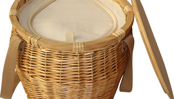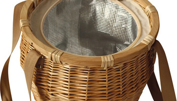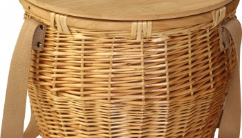 Kosz piknikowy o unikalnym kształcie z dużą powierzchnią chłodząca. Bambusowe wieczko może służyć jako taca lub deska do krojenia.