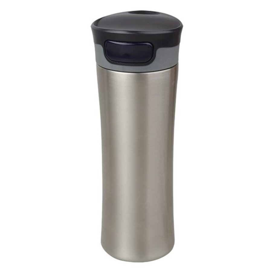 Szczelny termos - kubek izotermiczny o pojemności 430 ml. Dwie ścianki wykonane ze stali nierdzewnej, wewnętrzna ze stali o podwyższonej jakości 18/8 i próżni pomiędzy nimi. Zapewnia bardzo dobrą izolację cieplną płynu. Zamknięcie typu stop-go. Utrzymuje ciepło do 9 godzin.