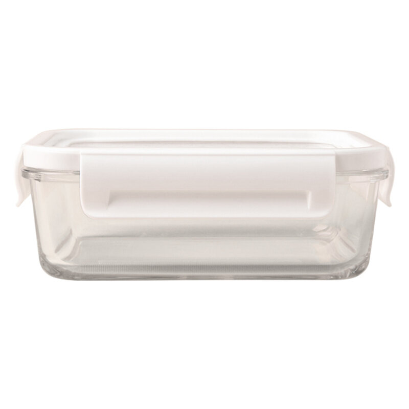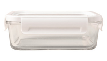 Szklany pojemnik na lunch (900 ml) z hermetyczną pokrywką z silikonu. Elastyczna pokrywka pozwala dopasować się do zawartości pojemnika zwiększając jego objętość. Można używać w mikrofalówce, piekarniku, zamrażarce oraz myć w zmywarce. Zakres temperatur dla szkła: -40 ~400 ℃. Zakres temperatur dla pokrywki: -20 ~120 ℃