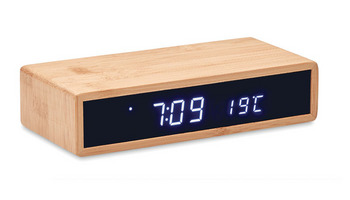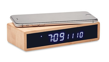 Wielofunkcyjna ładowarka bezprzewodowa z wbudowanym budzikiem i wyświetlaczem temperatury. Niebieski wyświetlacz LED poinformuje Cię o czasie i temperaturze. Dzięki stylowej bambusowej obudowie będzie dobrze wyglądać w każdym pomieszczeniu w Twoim domu lub w biurze. To urządzenie działa z każdym smartfonem wyposażonym w technologię bezprzewodowego ładowania Qi, takim jak najnowsze urządzenia z systemem Android, iPhone® 8, X i nowsze. Bezprzewodowa ładowarka jest dostarczana z wtyczkowym zasilaczem AC-DC. Wyjście bezprzewodowe: DC5V / 1A. Nie nadaje się do użytku w Wielkiej Brytanii.