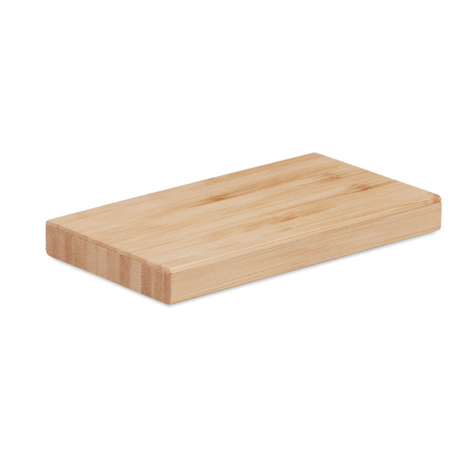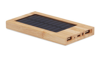 Power bank o pojemności 4000 mAh z bambusową obudową i panelem słonecznym. Ten naturalnie wyglądający power bank naładuje się sam dzięki wbudowanemu panelowi słonecznemu. Umieść go na słońcu lub w bezpośrednim świetle dziennym, a zacznie się ładować. Bateria o pojemności 4000 mAh wystarczy do naładowania smartfona, gdy będziesz potrzebować dodatkowej energii. Posiada 2 wyjścia USB, DC5V/1A. W zestawie znajduje się lampka kontrolna i kabel USB z wtyczką micro-USB. Bambus jest produktem naturalnym, mogą występować niewielkie różnice w kolorze i rozmiarze poszczególnych elementów, co może mieć wpływ na końcowy efekt dekoracji.