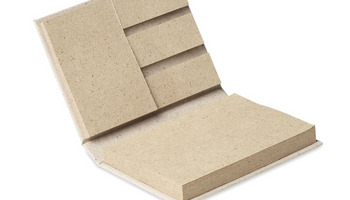 Wielowymiarowe karteczki samoprzylepne wykonane z papieru trawiastego z kartonową okładką. Zapisz wszystkie swoje ważne notatki i przypomnienia na tych ekologicznych karteczkach samoprzylepnych. Proces produkcji jest zrównoważony od początku do końca i bardziej przyjazny dla środowiska niż tradycyjny papier drewnopochodny. Wyprodukowano w UE.