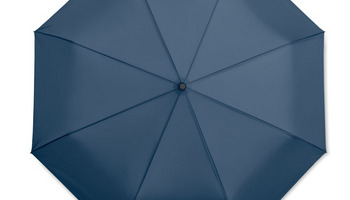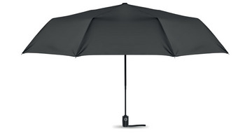 27 calowy parasol wiatroodporny z systemem automatycznego otwierania i zamykania. Materiał 190T, trzon metalowy, czarne ożebrowanie wykonane z włókna szklanego. Czarna rączka z PP, z dopasowanym etui.