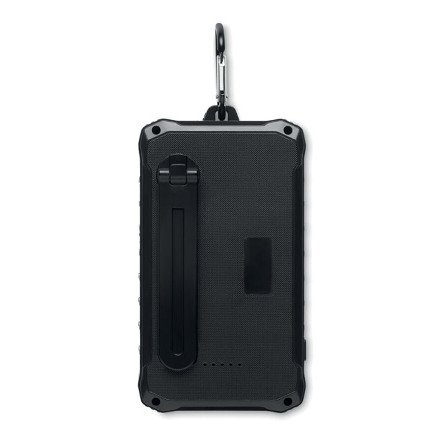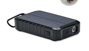 Solarny power bank 8000 mAh z dynamem na korbkę. W zestawie 1 lampka LED o mocy 100 lumenów. Wejście/wyjście typu C, 2 wyjścia USB-A. Wyjście DC 5V/2.1A.