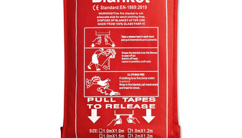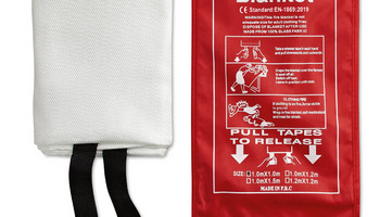 Koc gaśniczy z włókna szklanego w etui z PVC. Wymiary: 95x100 cm.