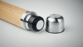 Izolowany termos ze stali nierdzewnej z podwójnymi ściankami i bambusową obudową. Pojemność 400 ml. Bambus jest produktem naturalnym, dlatego mogą wystąpić nieznaczne różnice w kolorze, wzorze i rozmiarze. Szczelna.