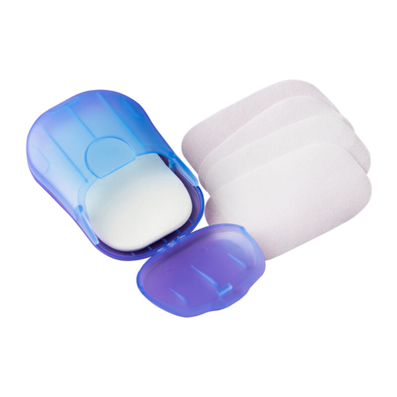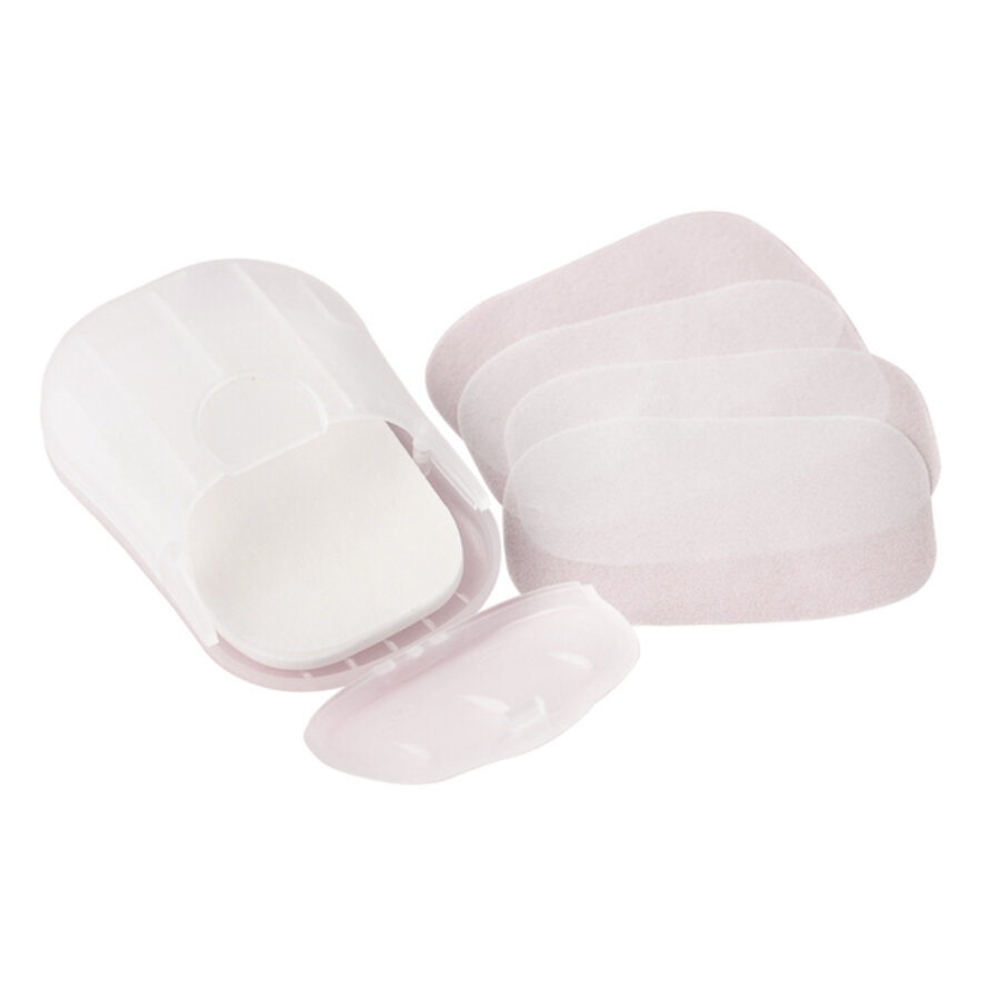 Mydlane listki w estetycznym, zamykanym etui. Higieniczny mini zestaw idealny by zawsze mieć go przy sobie w torebce, samochodzie czy podróży. Aby umyć ręce wystarczy umieścić rozpuszczalny, mydlany listek na dłoni i zmoczyć go wodą. 25szt listków w zestawie.