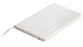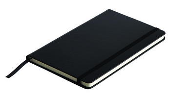 Notatnik w twardej oprawie z elastyczną gumką chroniącą wnętrze. Papier kremowy chamois w kratkę o gramaturze 70 g/m2 o wymiarze 13 x 21 cm, 80 kartek, tasiemka do zaznaczanie ostatniej zapisanej strony. Rozmiar biurkowy.