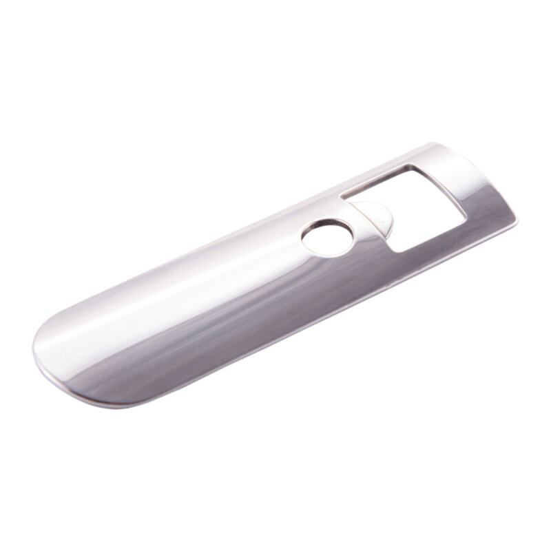 Wykonany z polerowanej stali nierdzewnej otwieracz do butelek.