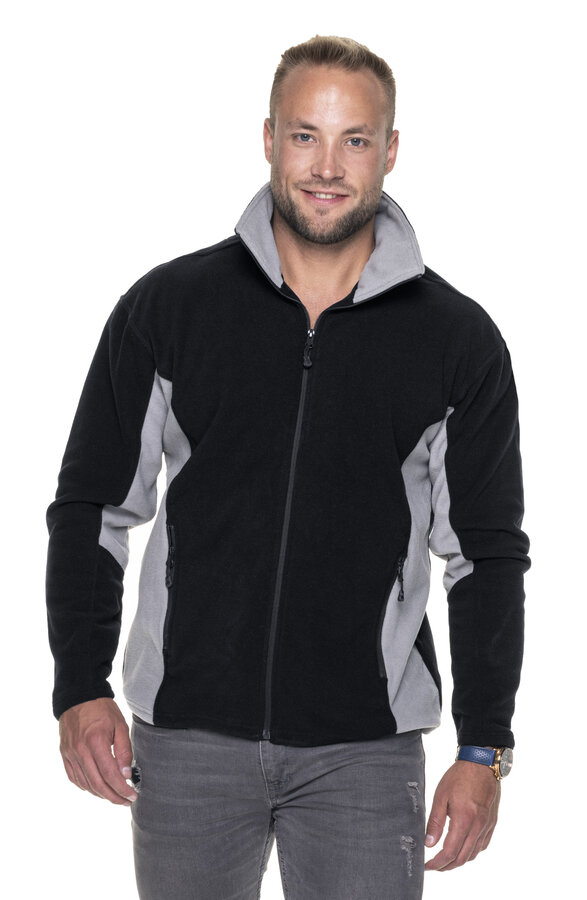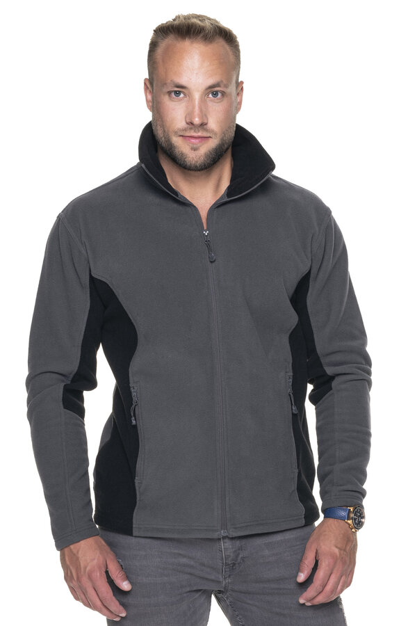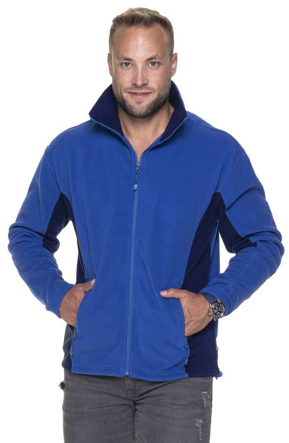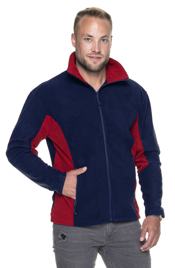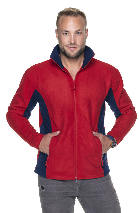 Męska ciepła bluza polarowa wykonana z mikropolaru; wstawki w kontrastowym kolorze; pionowe cięcia modelujące; zamek główny oraz kieszeni nylonowy; system ściągaczy u dołu wewnątrz; elastyczna taśma wszyta w dole oraz w mankietach; wykończenie antypillingowe materiału zapobiegające mechaceniu się.