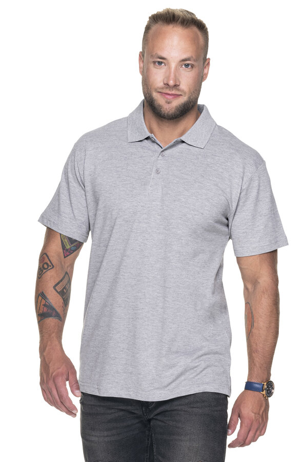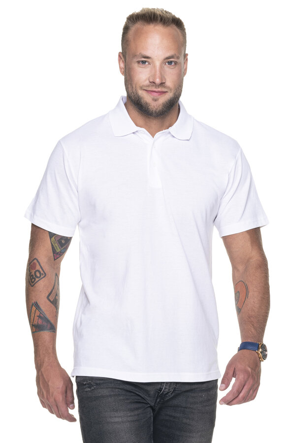 Męska koszulka polo z krótkim rękawem wykonana z dzianiny pique; klasyczny fason; materiał poddany praniu enzymatycznemu, dzięki czemu jest miękki i pozbawiony nierówności; wykończenie silikonowe materiału powodujące że jest gładki i miły w dotyku; materiał o niskiej kurczliwości; płaski kołnierz wykonany ze ściągacza rib 1x1; kołnierz i ramiona z taśmą wzmacniającą i stabilizującą, która pozytywnie wpływa na trwałość szwów; trzy guziki; rozcięcie na bokach wykończone taśmą wzmacniającą od wewnątrz; podwójne, gęste szwy do których wykorzystano nici najwyższej jakości.