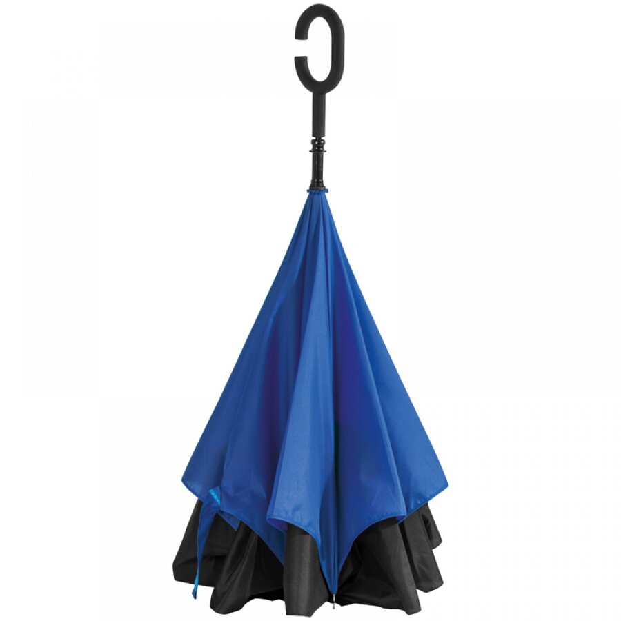 Parasol składany odwrotnie niż tradycyjny, dzięki czemu można np. bez problemu wsiąść do samochodu w trakcie deszczu. Parasol wykonany z podwójnej tkaniny typu pongee 190T i poliestru, posiada pasek na nadgarstek.