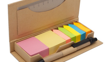 Zestaw składający się z 12 centymetrowej linijki, 2 bloczków karteczek samoprzylepnych, 5 kompletów karteczek memo i długopisu. Wkład w kolorze niebieskim.